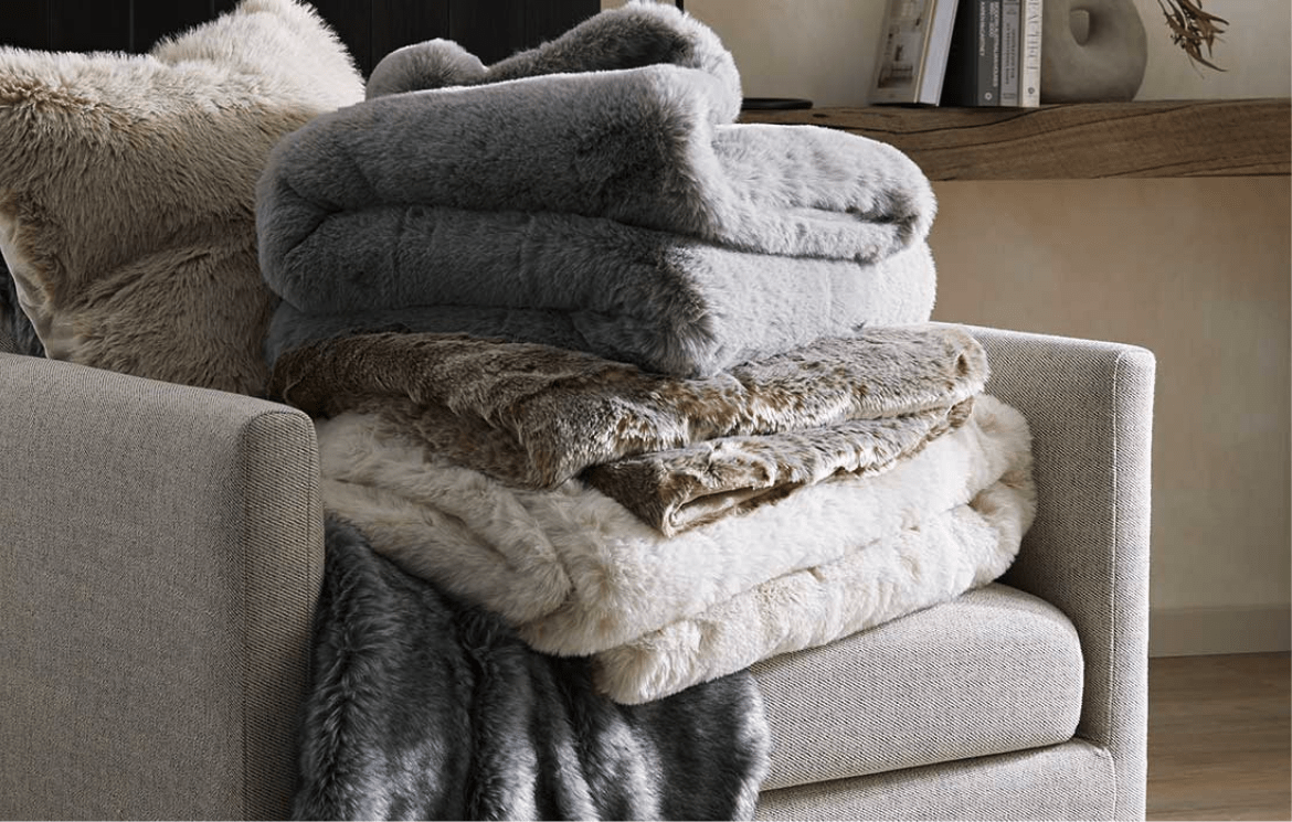 Indulge in luxurious Faux Fur blankets, throws and cushions